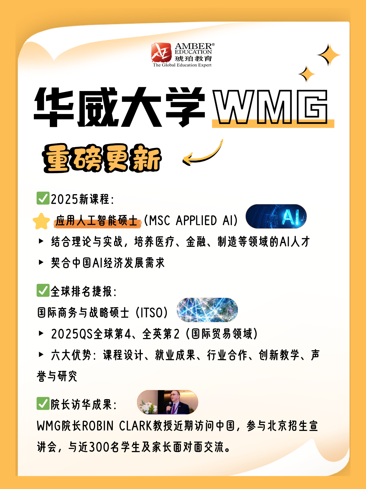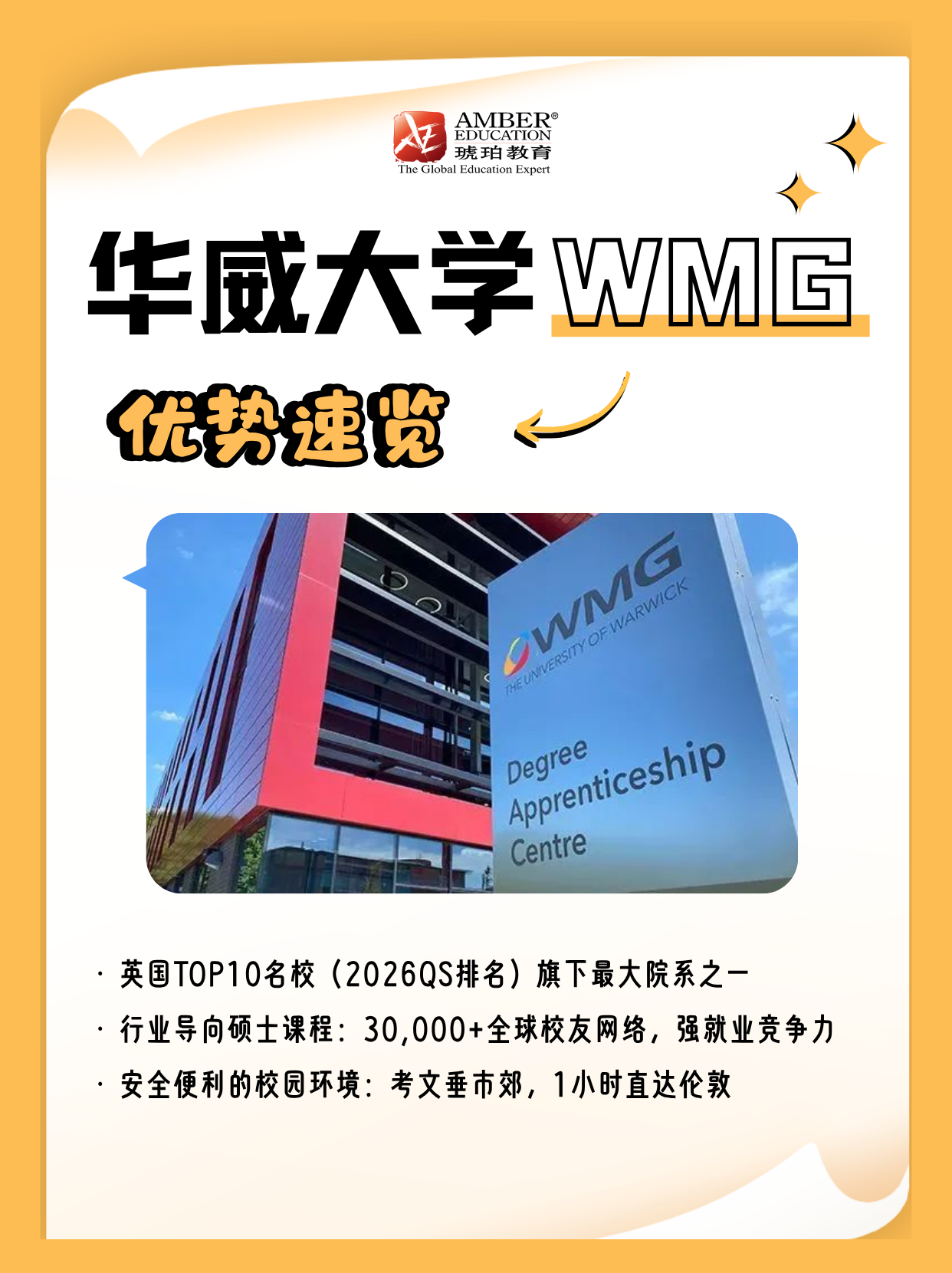 有意向的学子们请把握时机,尽早行动!对于想了解华威大学、华威大学WMG学院以及其他英国留学相关信息,包括院校选择、专业指导等方面,欢迎随时联系琥珀教育的资深顾问团队,我们为您提供专业解答!