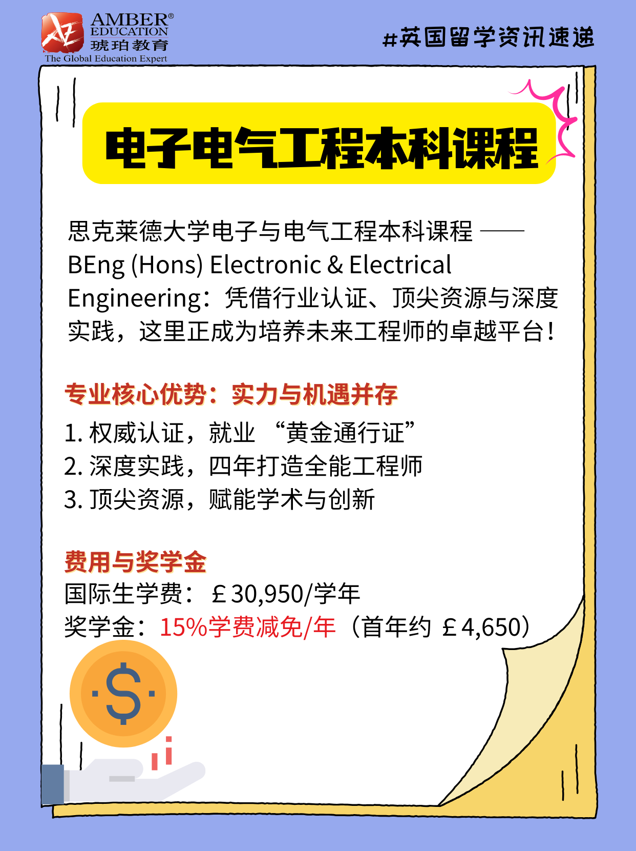 英国思克莱德大学电子与电气工程本科课程 ——BEng (Hons) Electronic & Electrical Engineering:凭借行业认证、顶尖资源与深度实践,这里正成为培养未来工程师的卓越平台!