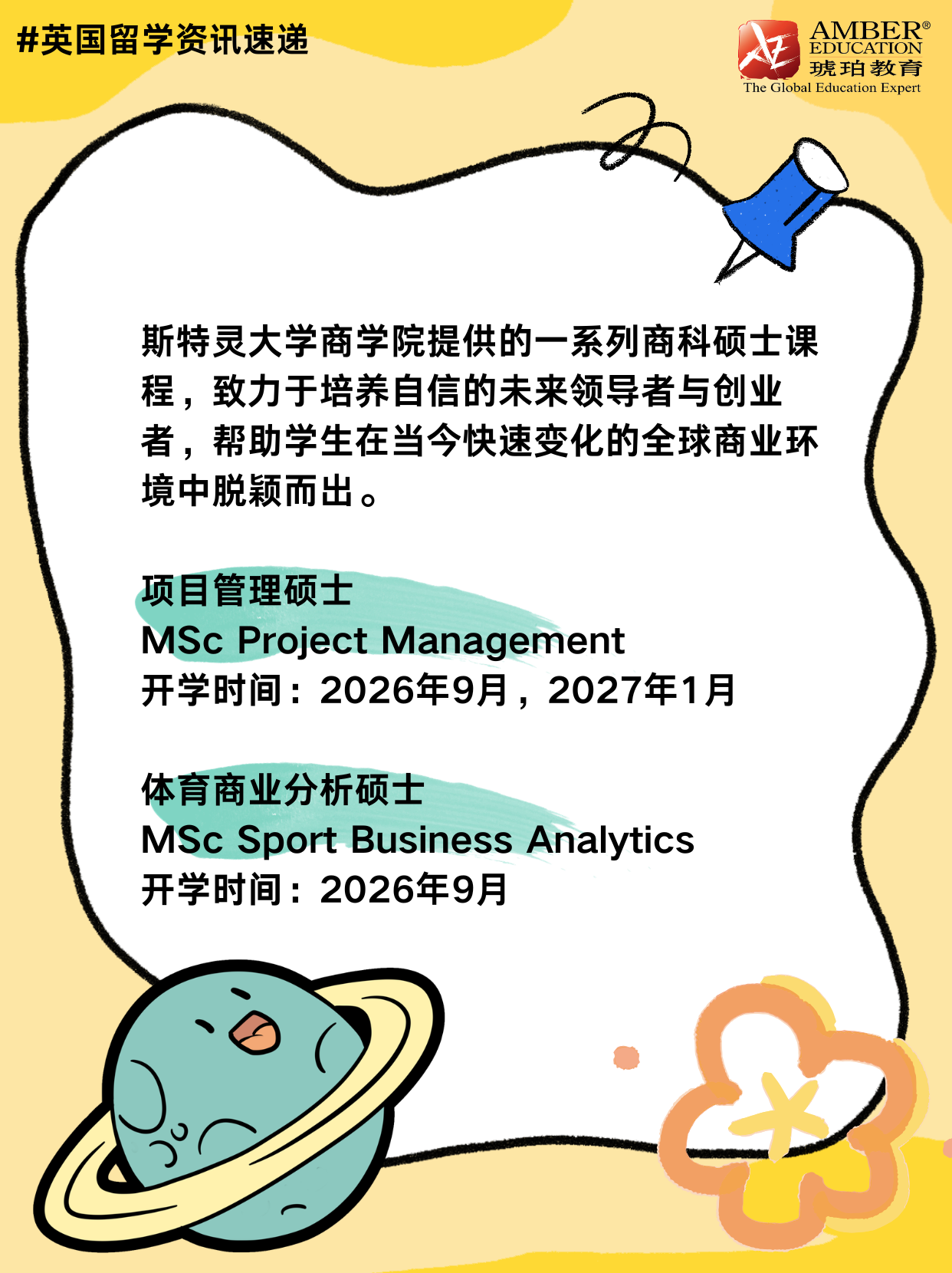 想在竞争激烈的商界崭露头角吗?英国斯特灵大学商学院不容错过!这里开设项目管理硕士、体育商业分析硕士等热门商科课程。📚课程聚焦前沿,师资实力强劲,旨在培育自信的未来领导者与创业者。无论你心怀何种商业梦想,都能在此汲取养分,在快速变化的全球商业浪潮中,一骑绝尘,脱颖而出!