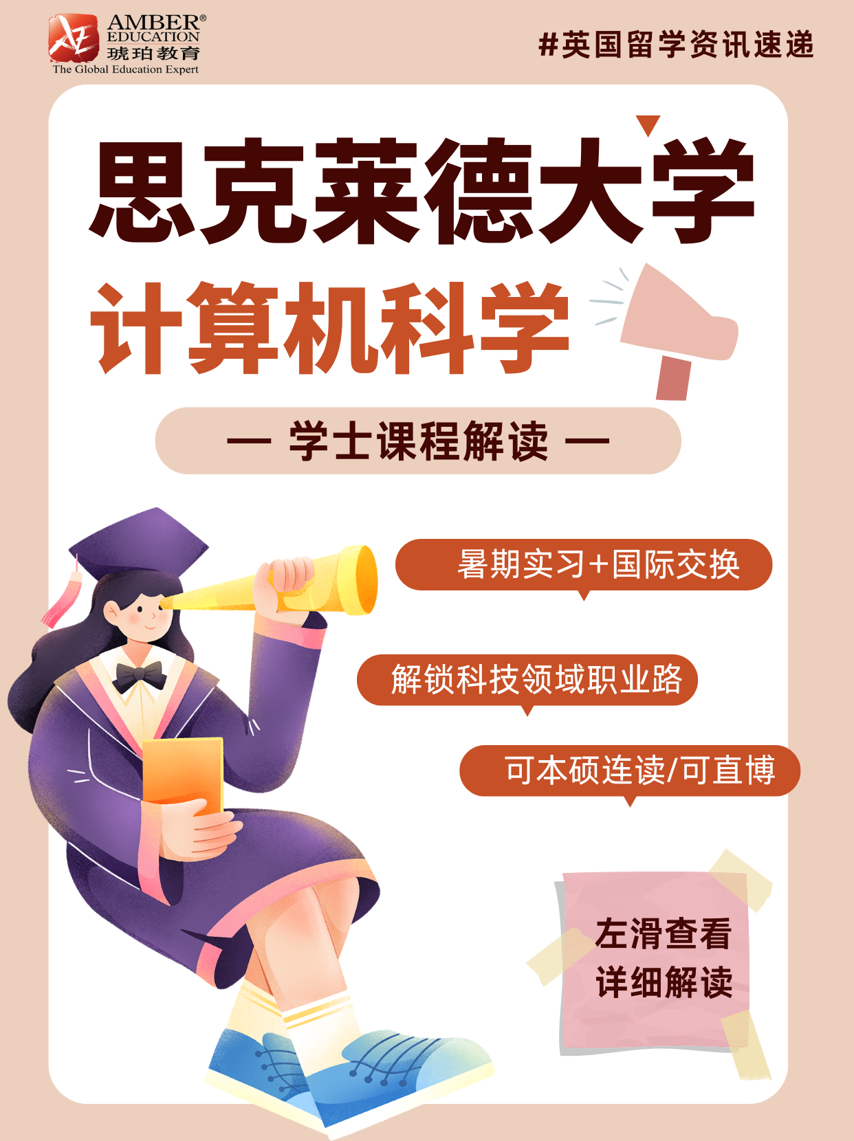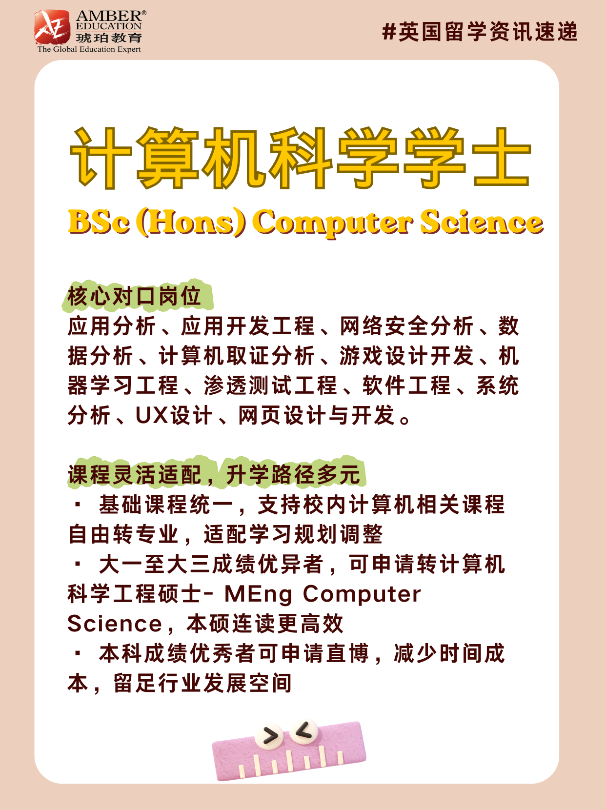 想在科技领域大展拳脚吗?英国思克莱德大学计算机科学专业别错过👏!这里有超棒的暑期实习、国际交换和企业合作项目,还能本硕连读,优秀者直博。课程获 BCS 等权威认证,学历全球 IT 与工程领域都认可💯。毕业后能投身应用分析、游戏开发、机器学习等超多核心岗位,职业发展前景超广阔🚀,速来了解!