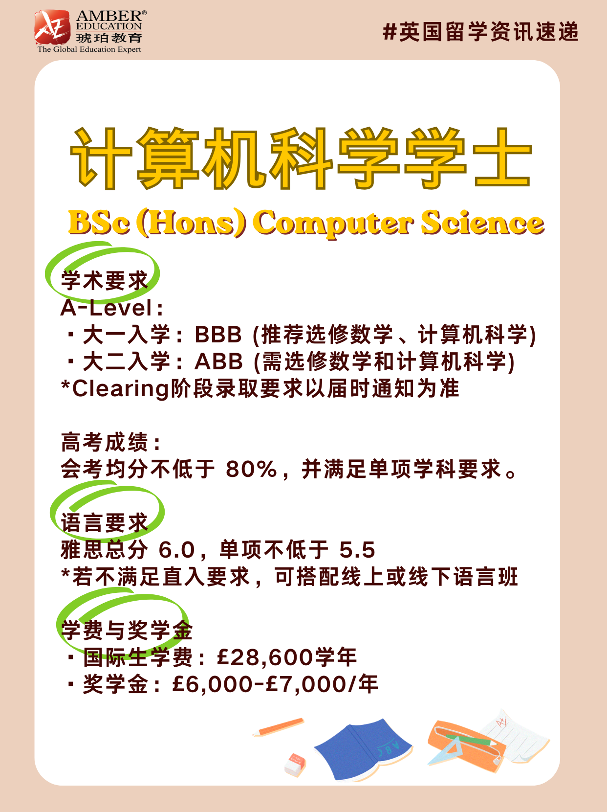 · 奖学金:£6,000-£7,000/年