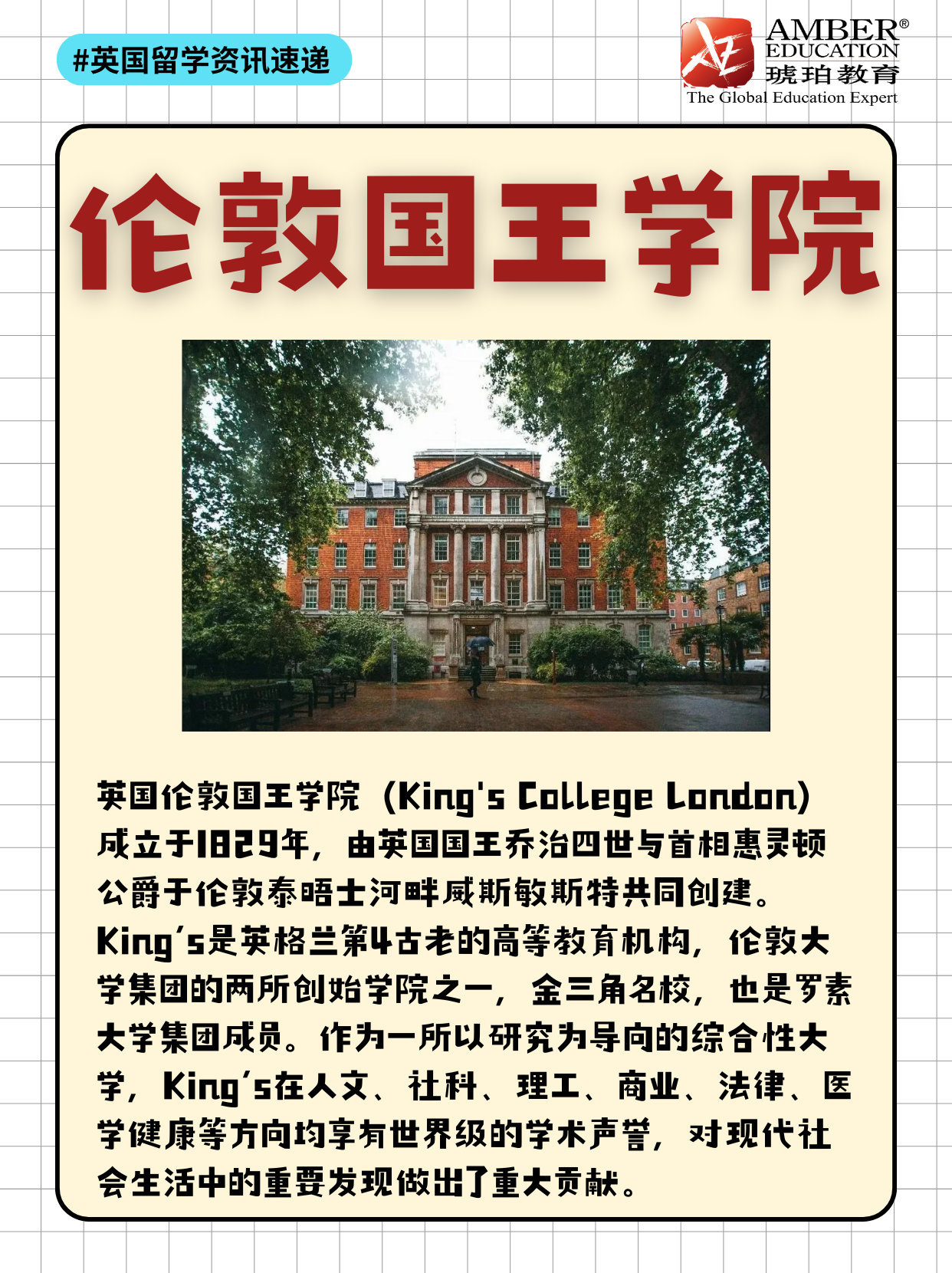 🇬🇧英国伦敦国王学院(King's College London)成立于1829年,由英国国王乔治四世与首相惠灵顿公爵于伦敦泰晤士河畔威斯敏斯特共同创建。King's是英格兰第4古老的高等教育机构,伦敦大学集团的两所创始学院之一,金三角名校,也是罗素大学集团成员。