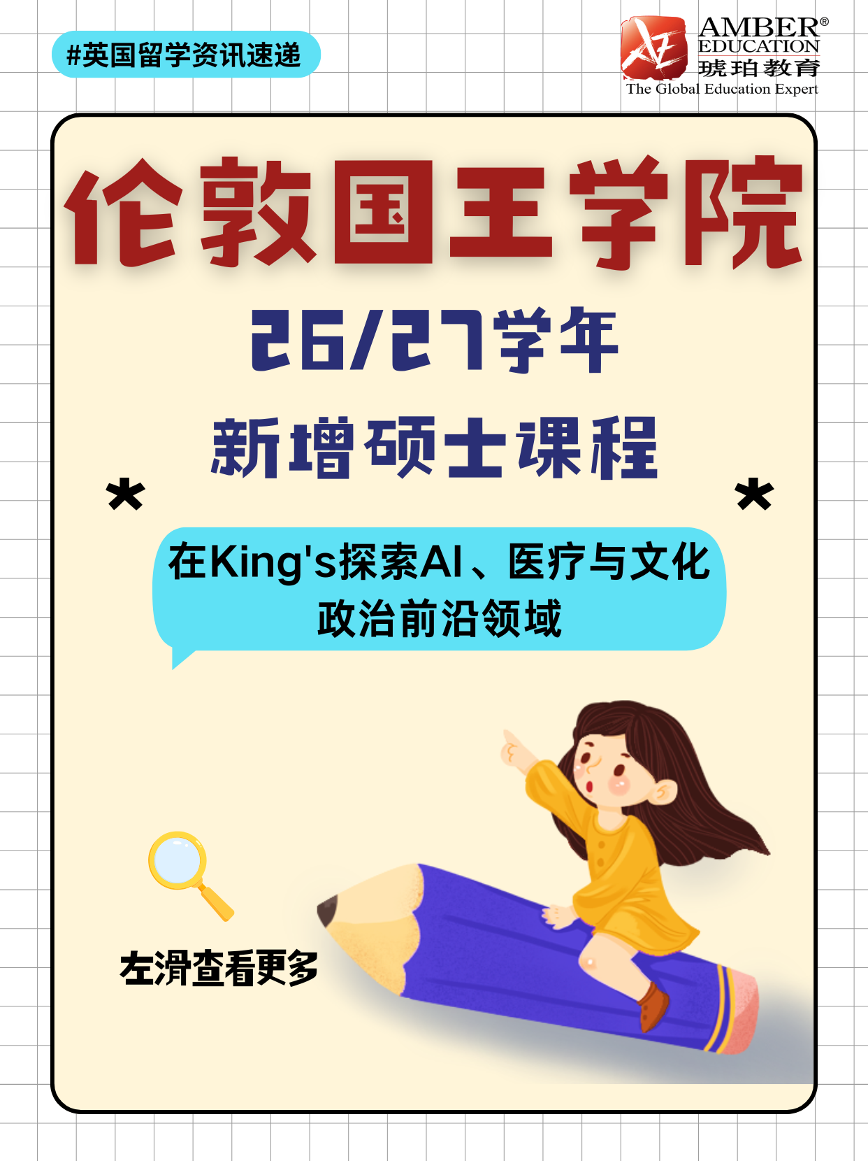 📣伦敦国王学院全新推出2026年入学的6门硕士课程,精准对接生物技术、人工智能、癌症医学、人文社科、医疗领导力等全球热门赛道。
