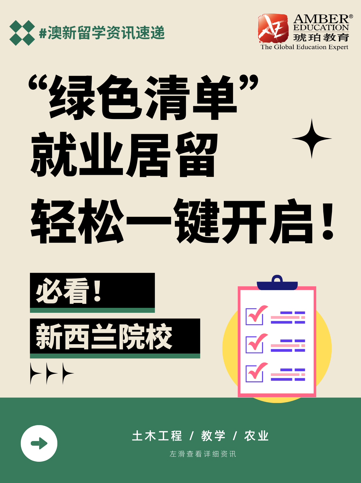 新西兰“绿色清单”聚焦全国紧缺岗位,涵盖工程、教育、农业、信息技术等领域。🌟若目标岗位在清单内,且自身具备相应学历资质、职业注册认证或相关工作经验,就有机会直接申请居留签证,或在新西兰工作满2年后再申请。