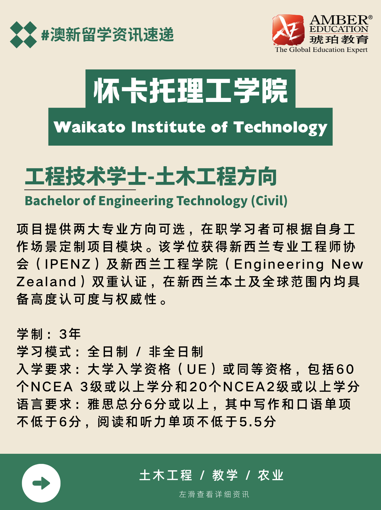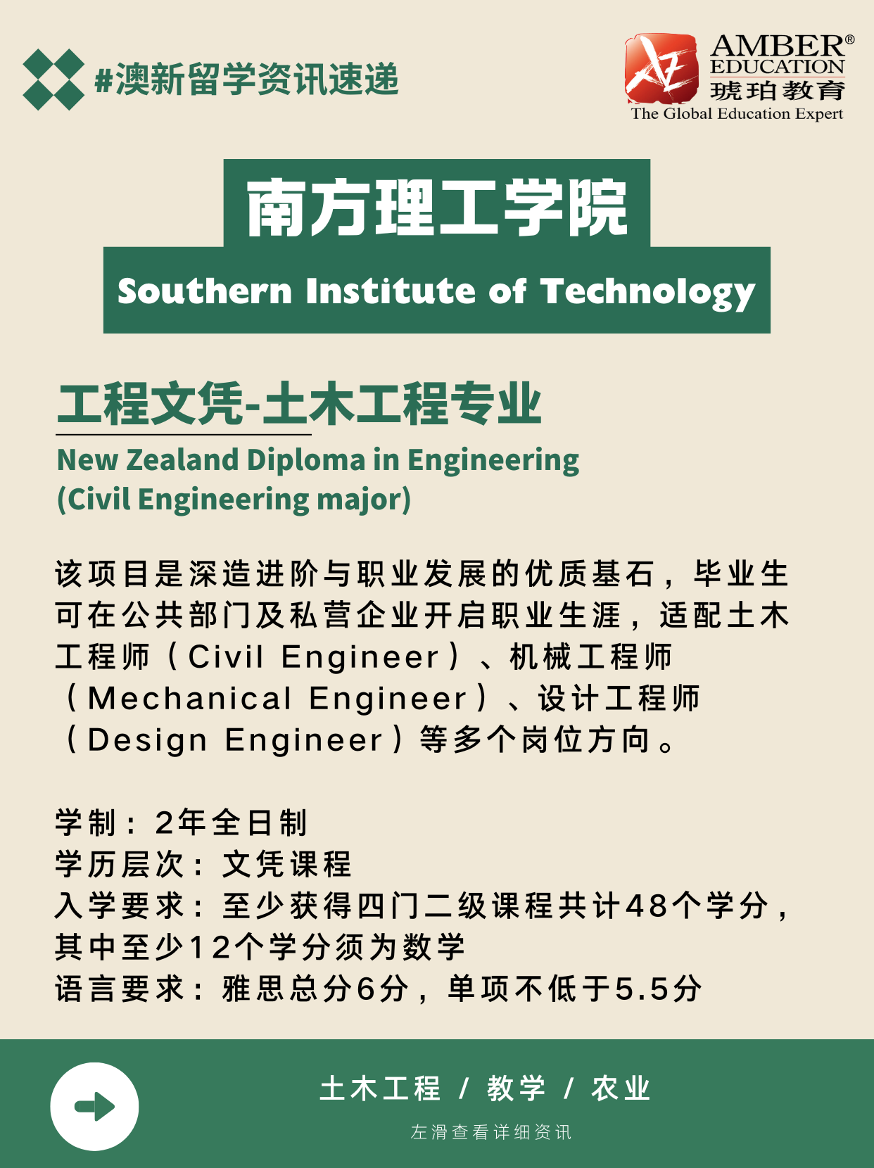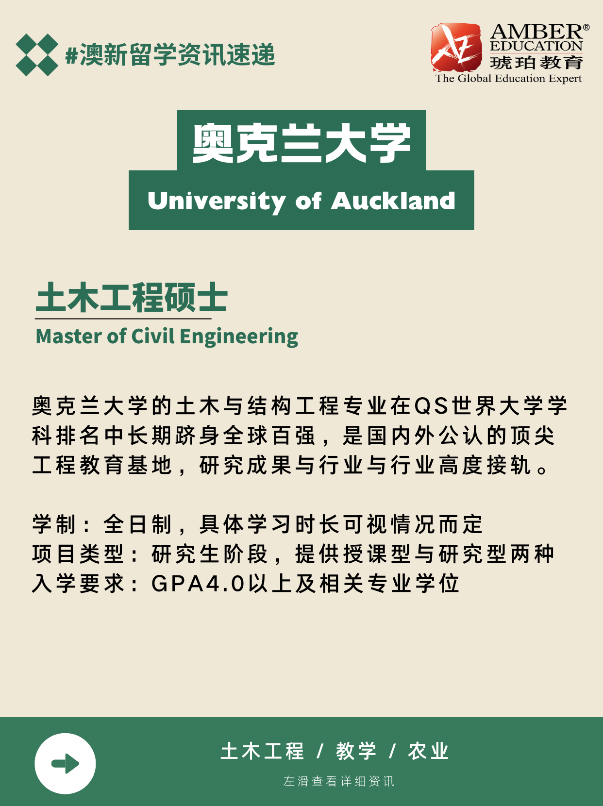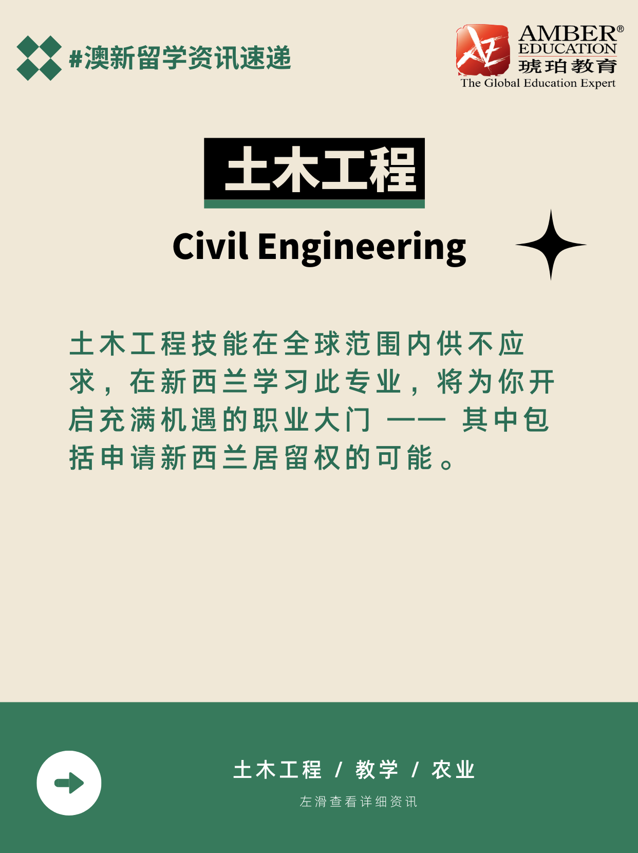 其中,土木工程🏗️、教学📚和农业🌾都是非常热门的专业,下面小编将为大家详细介绍开设了相关课程的新西兰院校项目。
