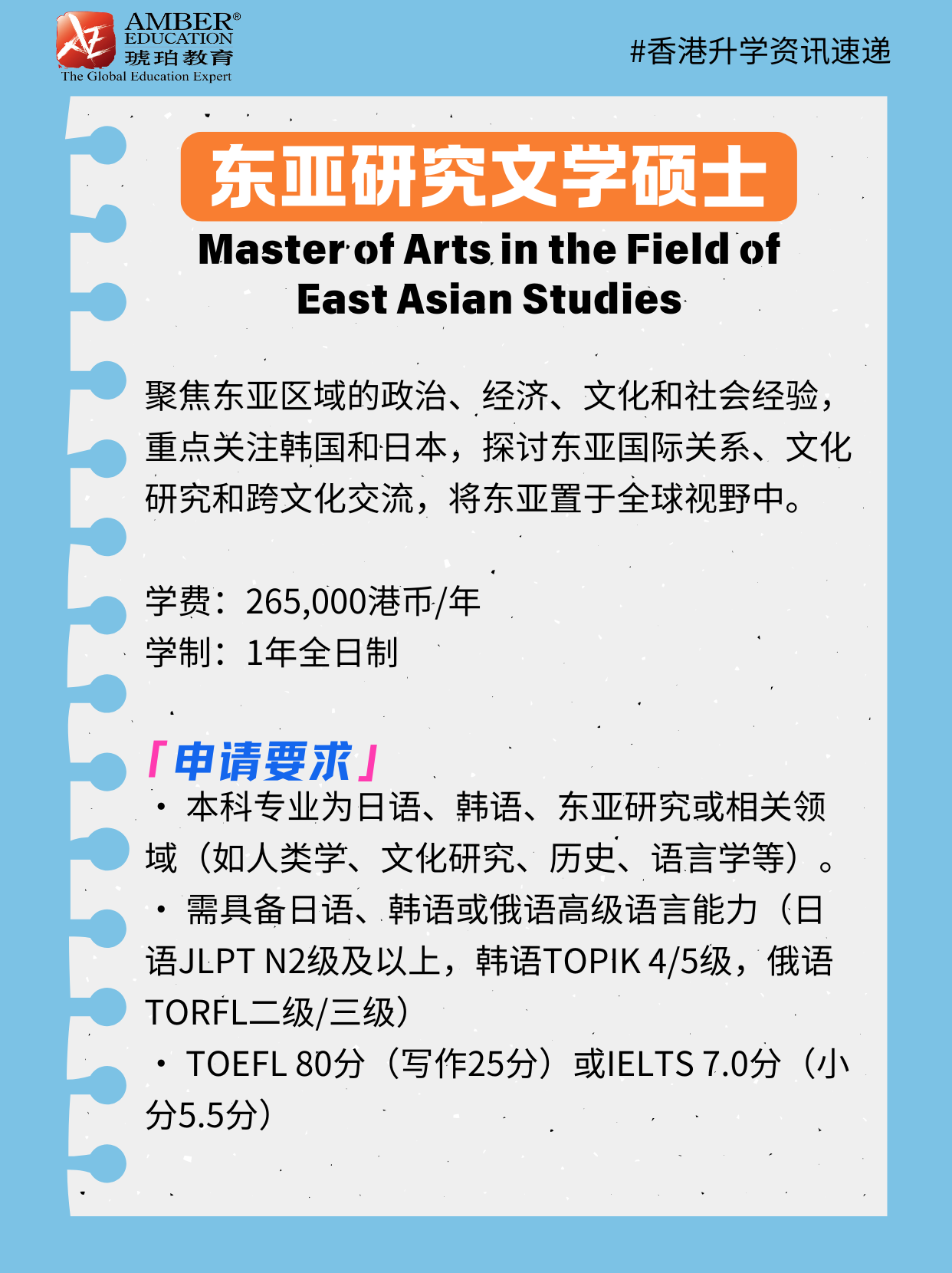 Master of Arts in the Field of East Asian Studies🔖申请要求: