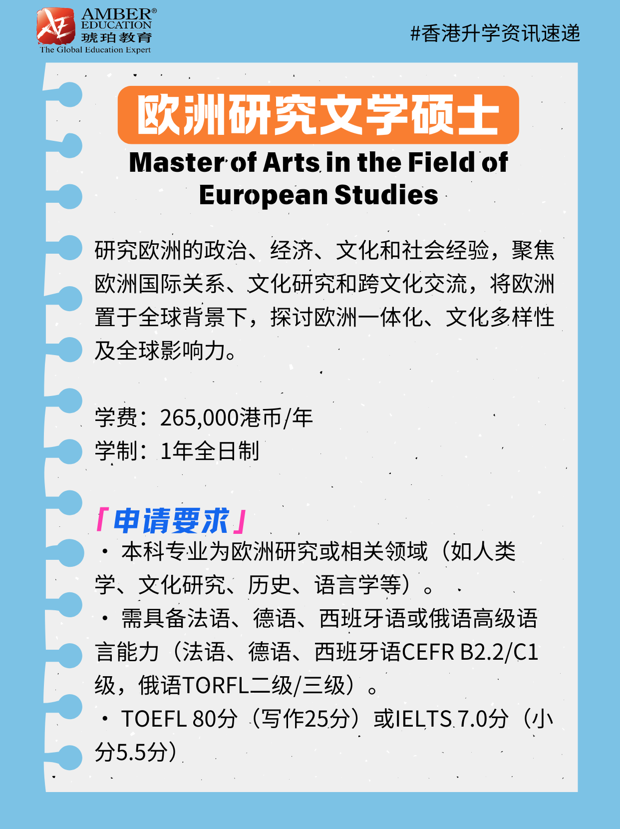 Master of Arts in the Field of European Studies🔖申请要求: