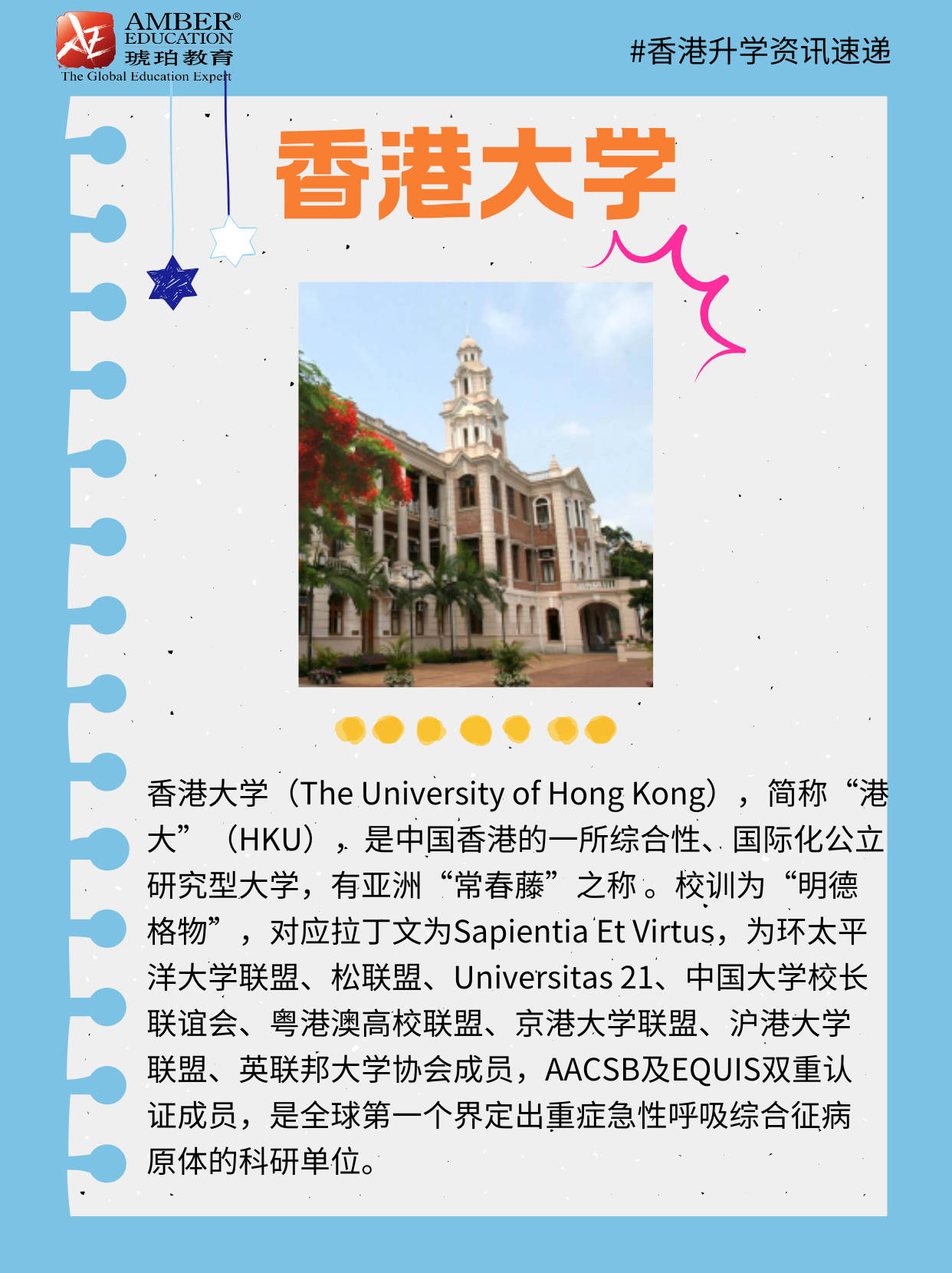🇭🇰香港大学(The University of Hong Kong),简称“港大”(HKU),是中国香港的一所综合性、国际化公立研究型大学,有亚洲“常春藤”之称 。香港大学是亚洲以至全球最顶尖的大学之一,2026年QS世界大学综合排名第11位、泰晤士高等教育世界大学排名第35位,QS亚洲大学排名第1位。