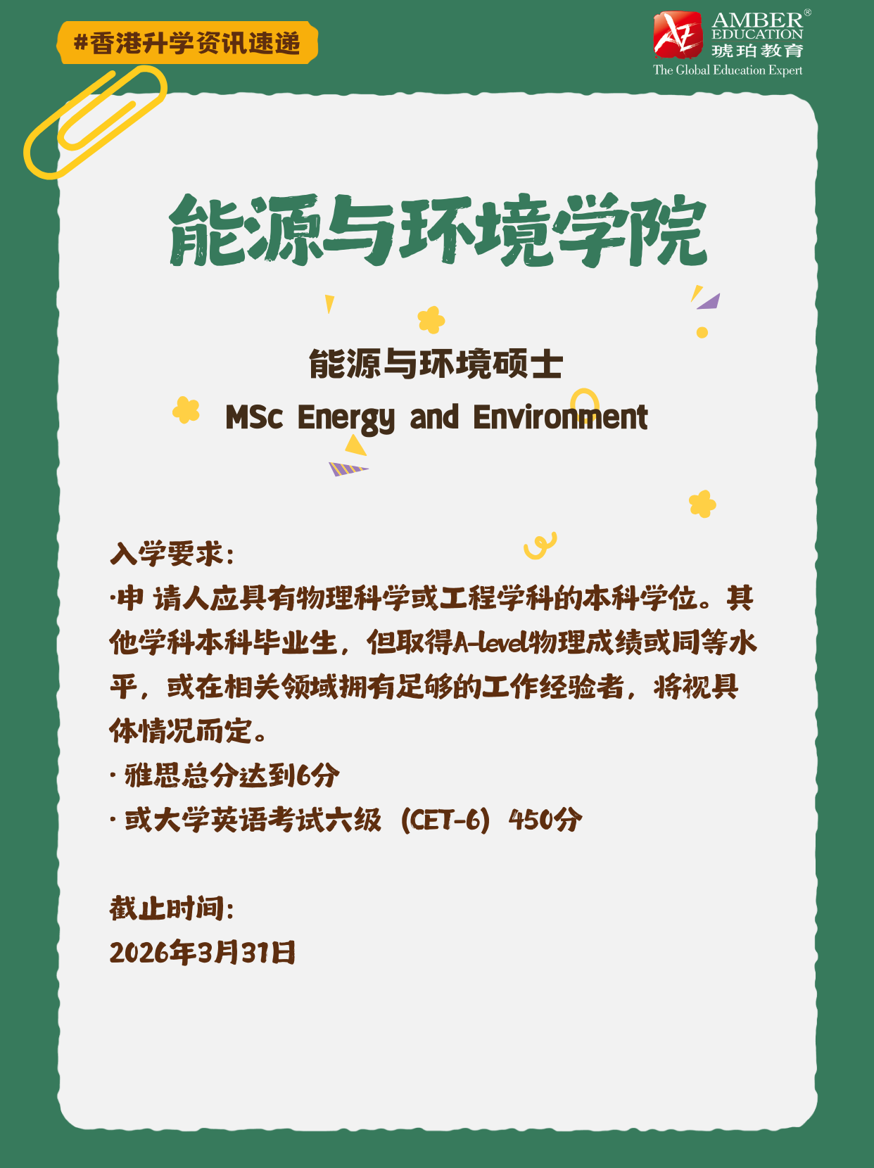MSc Energy and Environment 📖入学要求: