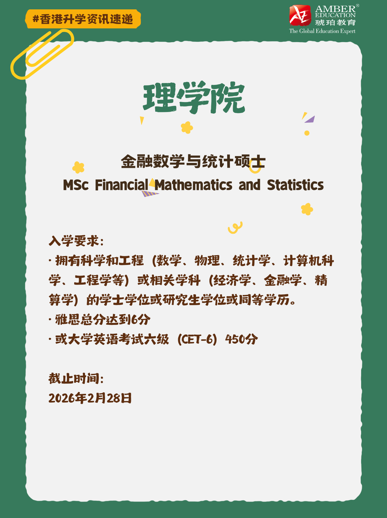 MSc Financial Mathematics and Statistics 📖入学要求: