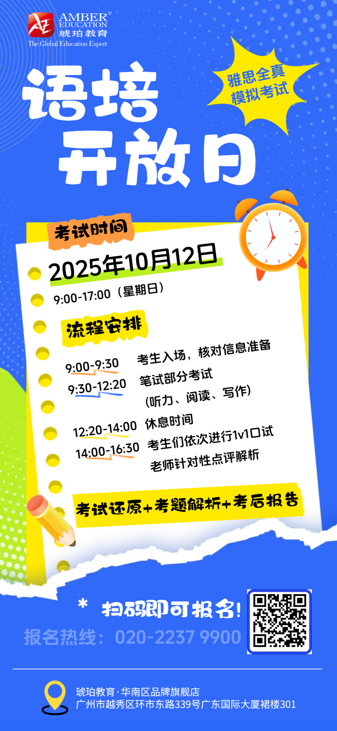 ☆ 凡是活动当天参加雅思模考的学生,可通过琥珀教育相关顾问购买雅思模考优惠券,享活动惊爆价:9.9元/次,仅限语培开放日当天考试可享,不与其他优惠同享。